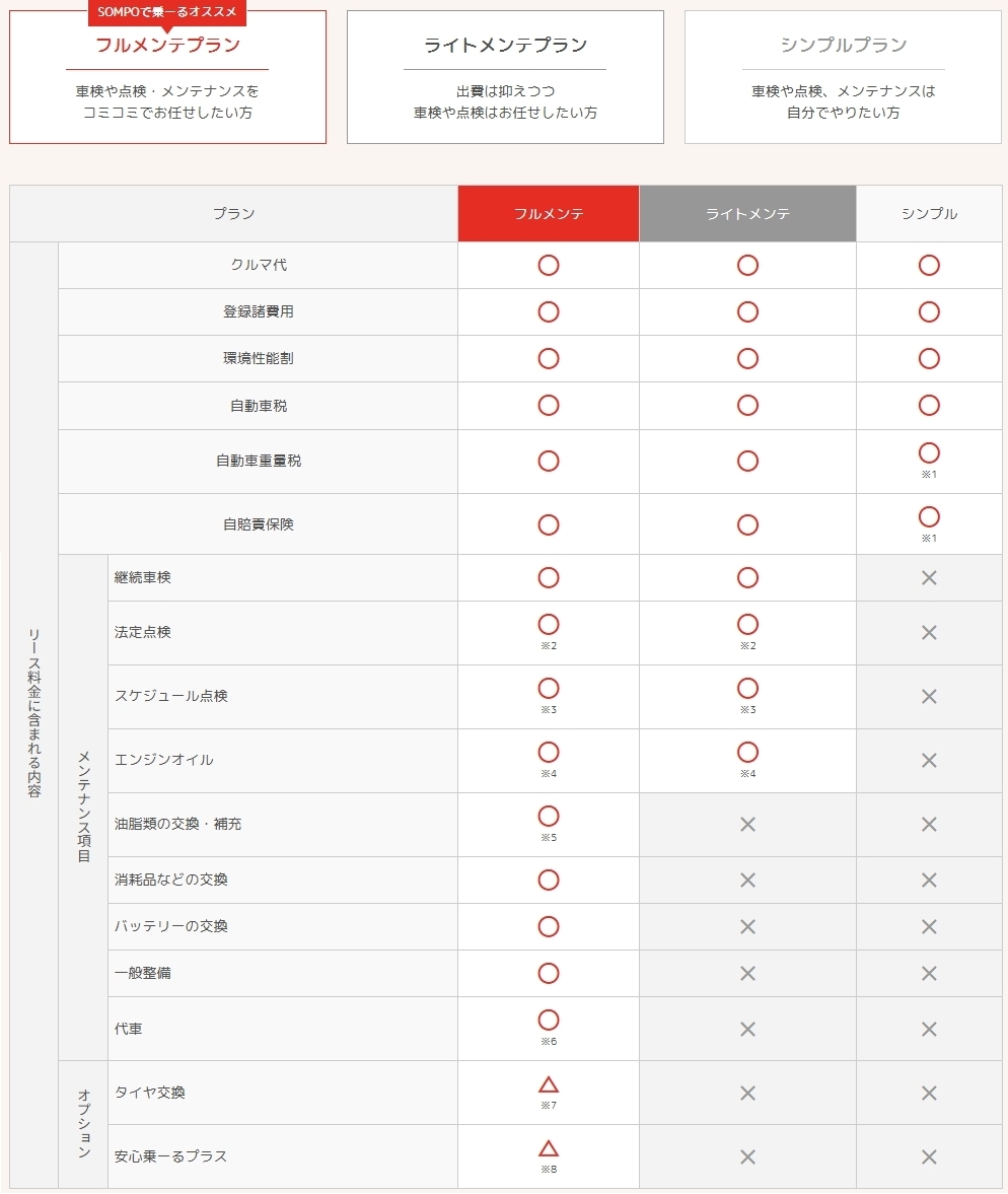 最大のメリットは、 月々の支払いを一定にできる点です。 また「SOMPOで 乗るーる」なら国内で販売している全メーカー・車種からお好きなクルマを選べます。